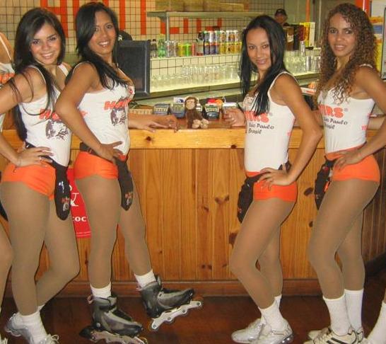 The Sao Paulo Hooters Girls and me... Check out the in-line skates on the one to my right! I see a potential C.G. issue here!?...(that would be C.G. as in Center of Gravity - the pilots geeks will get it?!...)