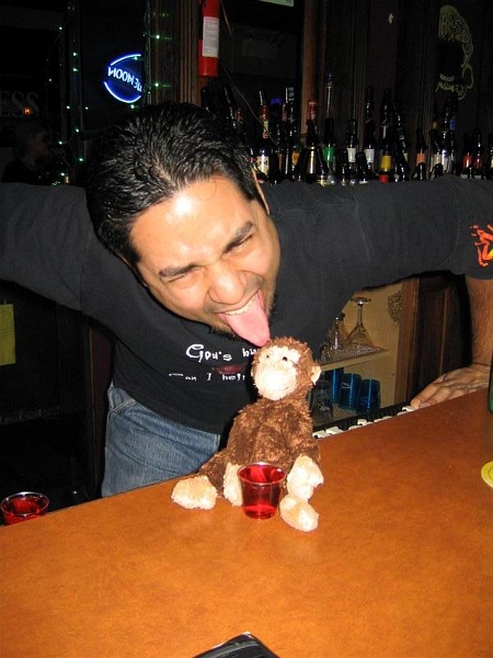 Oh. It's just George! He's crazy as a coconut and a heck of a bar-tender - this red magic potion rocks! - We like George! (...and he has a great name to boot!?... Think about it... but don't hurt yourself!)