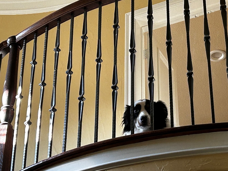 Zoey_ChillinTopOfStairs_2022-10 (2).JPG - Zoey - Creepin' at top of stairs