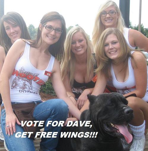 "VOTE FOR DAVE, GET FREE WINGS!!!" campaign. Even